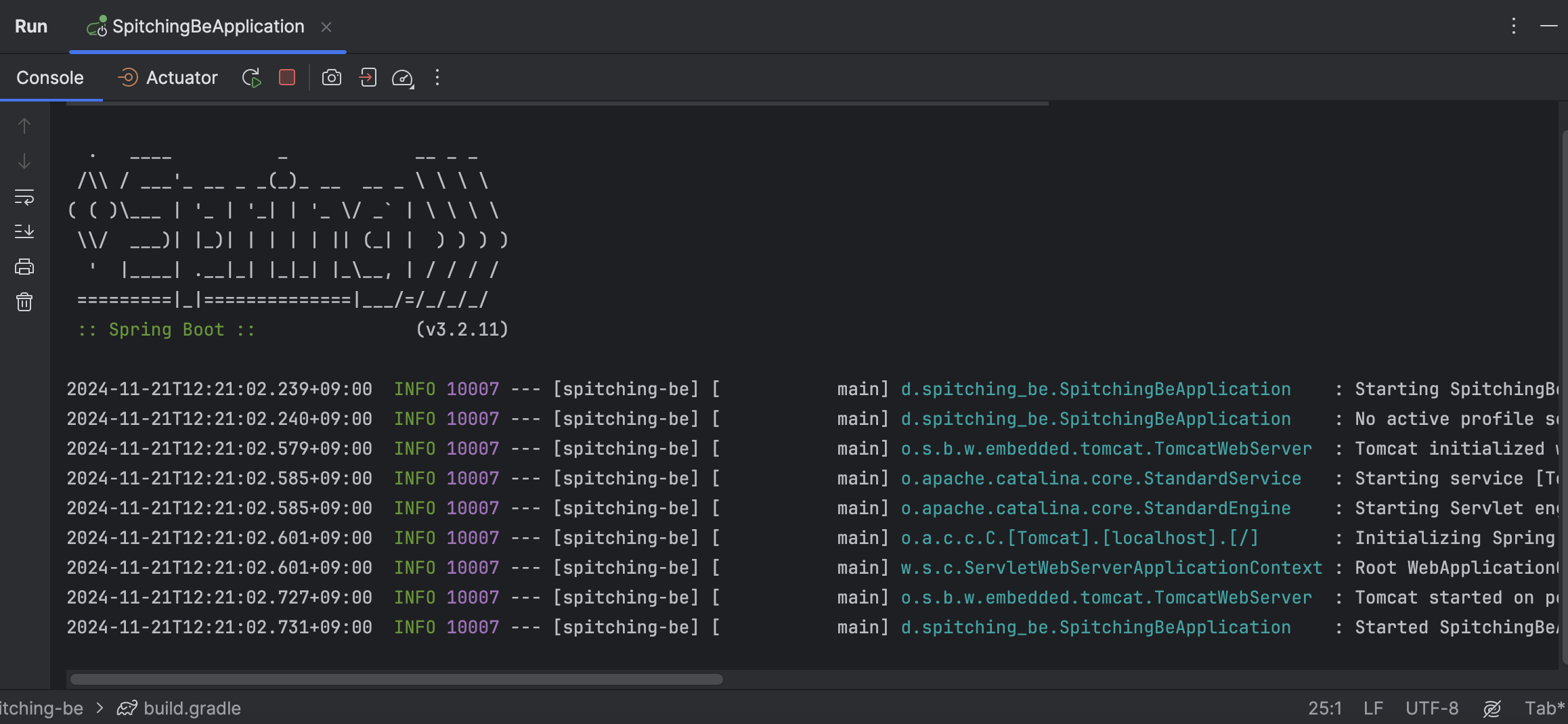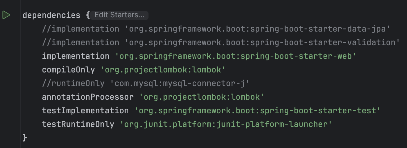 step 2) ๊ทธ๋์ 'build.gradle'์์ jpa, security, mysql์ ์ฃผ์์ฒ๋ฆฌ ํด์ค ํ ์คํ์ ํ๋ฉด ์์ ๊ฐ์ด ์ฑ๊ณต~