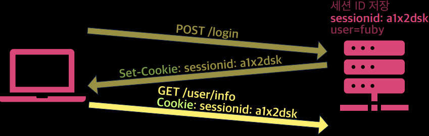 3) Cookie에 정보가 담겨있기 때문에 브라우저는 해당 사이트에 대한 모 든 요청의 쿠키에 세션 ID를 담아 전송한다.