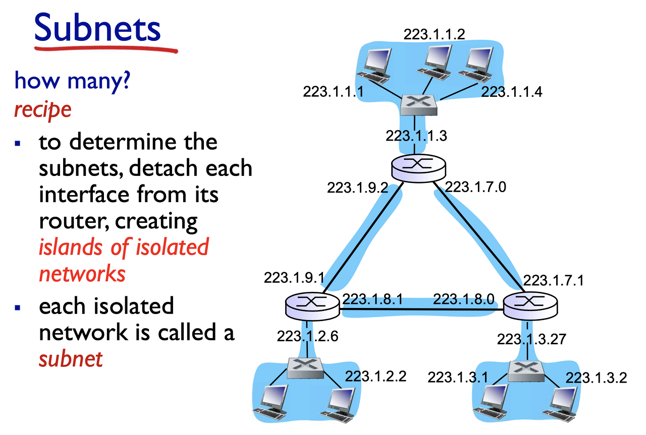 - subnet part: high order 24 bits → 라우팅 할 때 사용