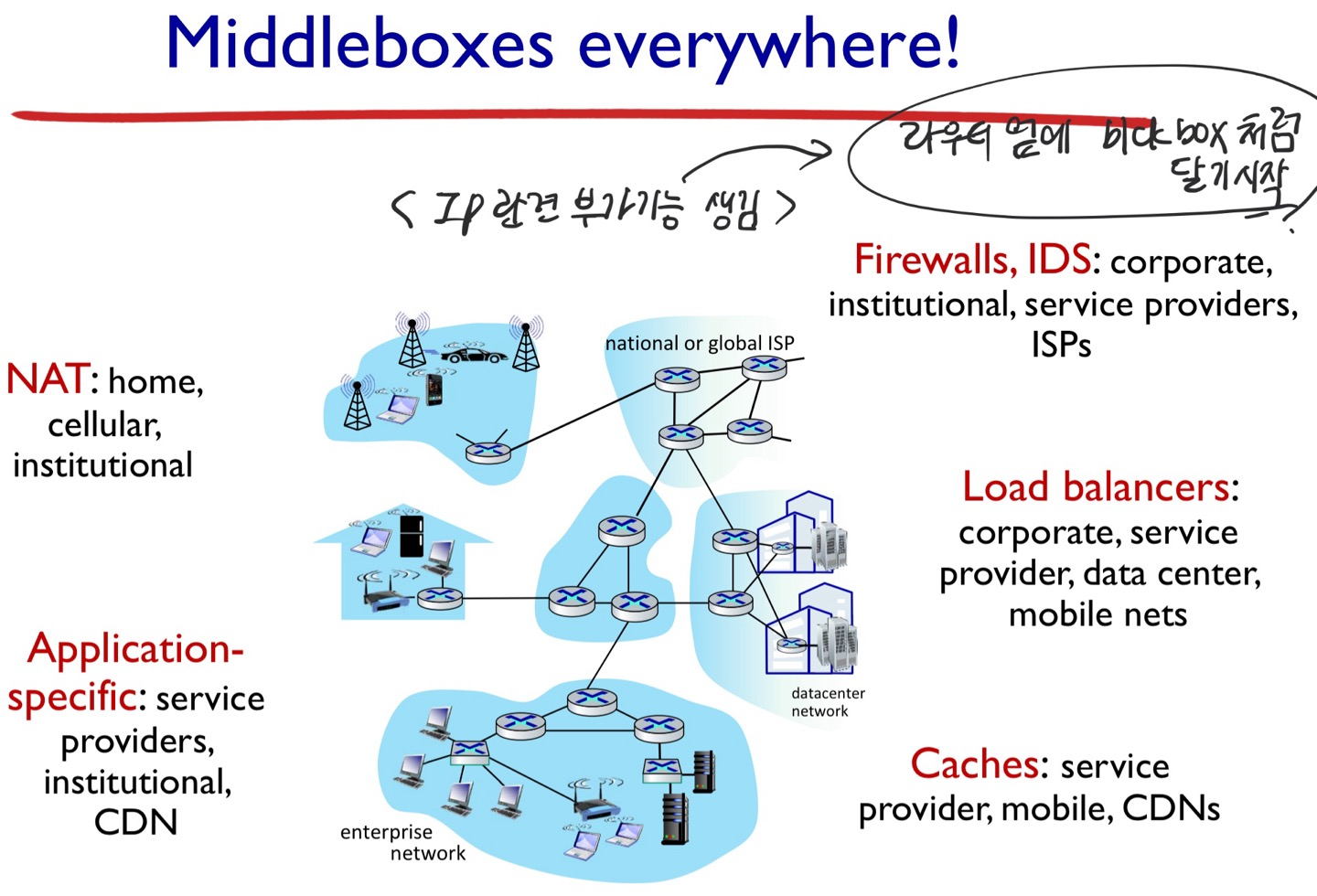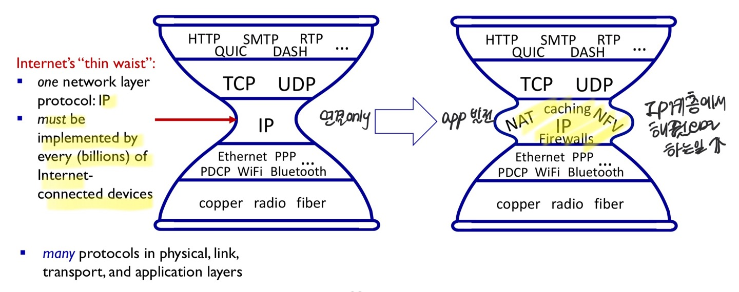 근데 점점 IP 계층에서 핸들링해주면 좋을 기능들을 막 추가하게 됨 ⇒ 합쳐서 middlebox라고 얘기함