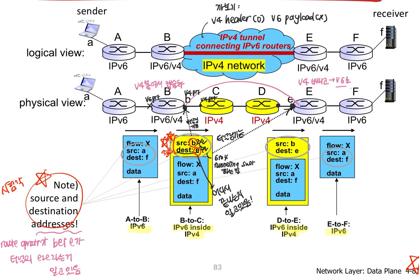protocol translation btw. IPv4, IPv6. (Payload 안의 주소도 필요시 바꿔줘야 함)- Tunneling !!!