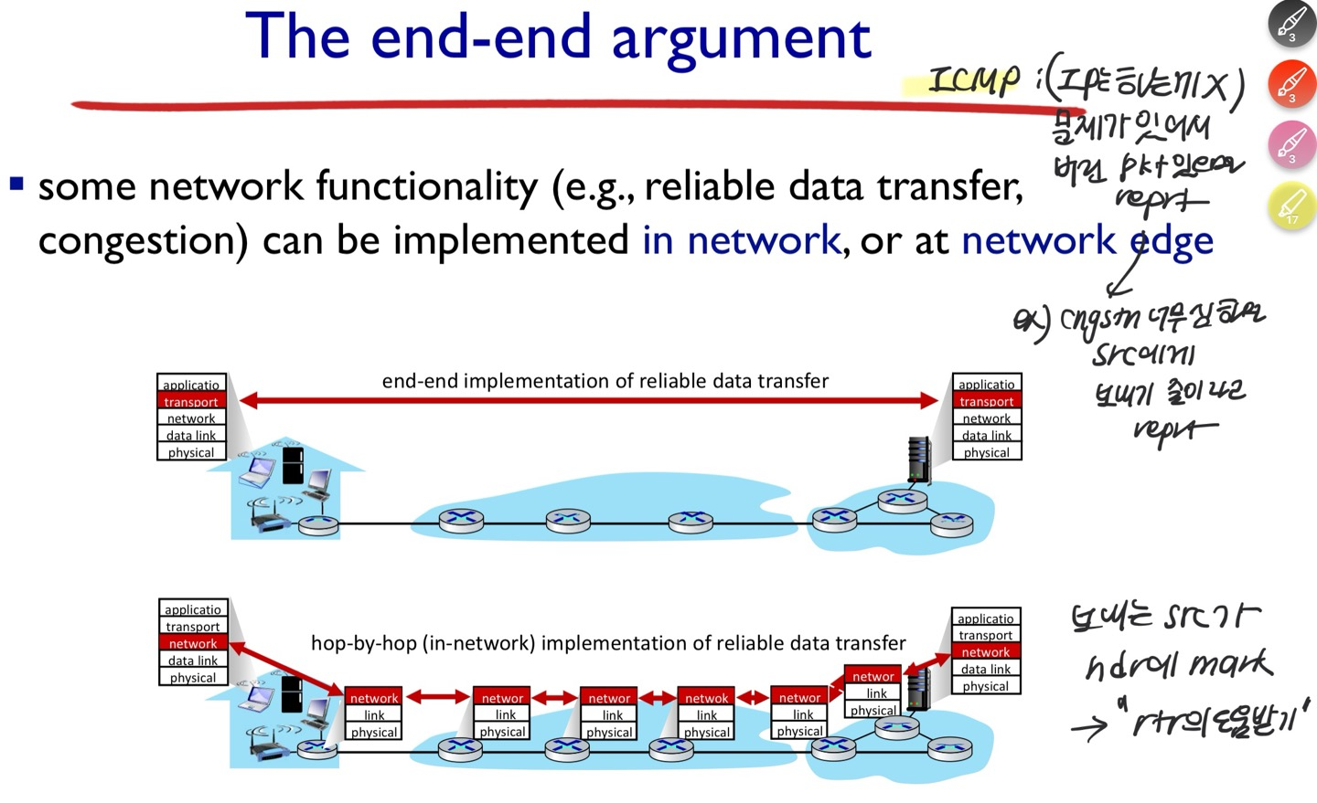 end-to-end로 보낸 message가 layer 3에서 host를 찾아가는 것을 focusing하고 있음.