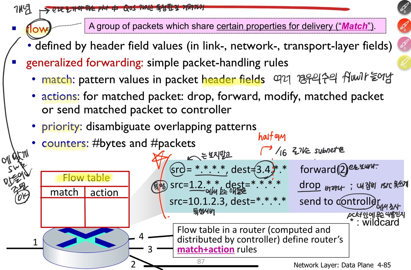- flow table : 계산 후 어떤 액션을 취할 지 정리되어있는 표