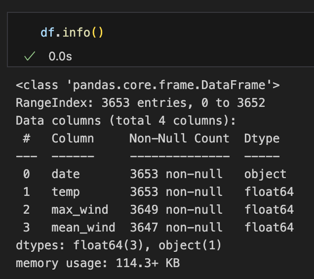 - 데이터의 개수 3653 entry, 행 인덱싱 번호 0~3652